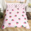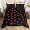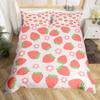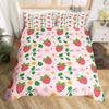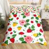 Cute Strawberry Duvet Cover Full King,Flower Leaves Tropical Fruit Bedding Set,Garden Rustic Plants Watercolor Chic Quilt Cover