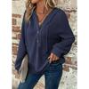 Experience comfort and style with this Women's V-Neck Waffle Knit Drawstring Button Long Sleeve Hoodie. Crafted from soft polyester, this hoodie features a solid pattern and a loose fit, ensuring ease of movement and a relaxed silhouette. The design includes a hooded neckline and practical drawstring details, while the long sleeves add a touch of warmth for cooler days. Ideal for casual outings or cozy days at home, this versatile piece seamlessly blends fashion and functionality.