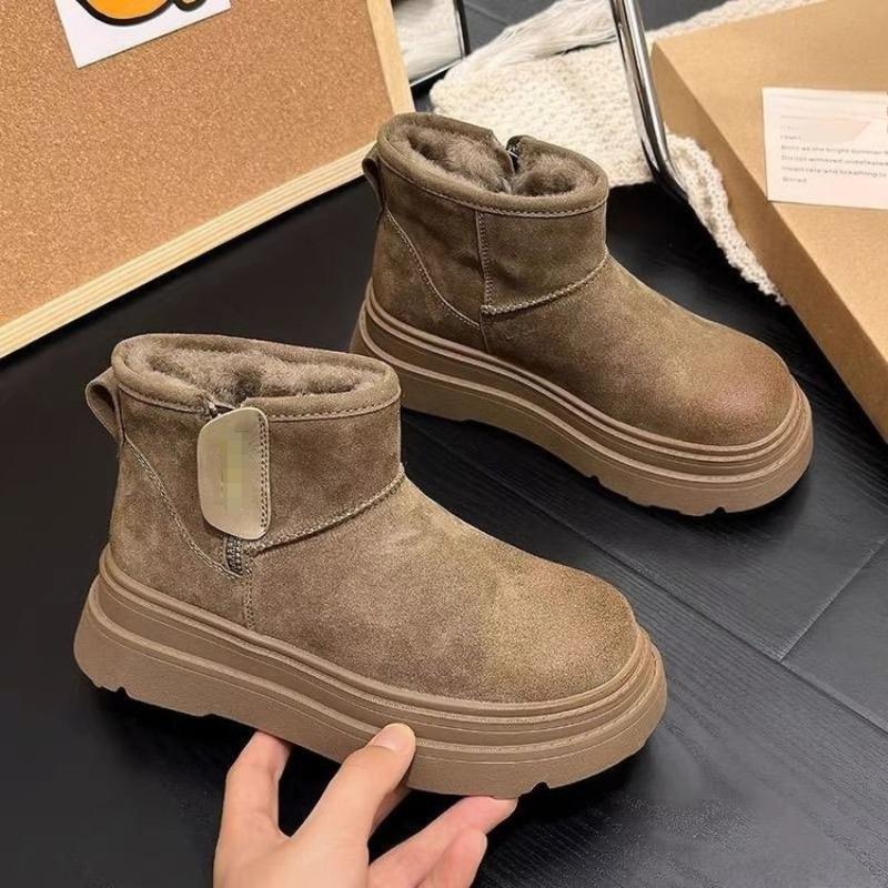 New Fleece Ankle Boots, Thickened Anti-slip Snow Boots, Women's Cotton Shoes and Thick-soled Boots