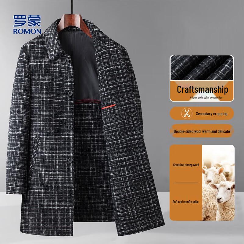 ROMON Men's Plaid Mid-length Double-sided Wool Coat
