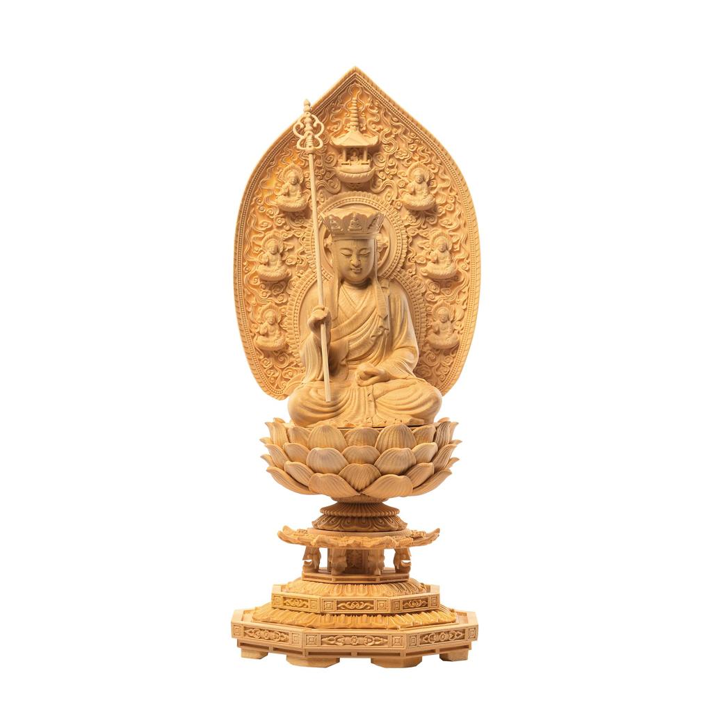 Jizo Bodhisattva Buddhist Statue, Wood Carving, Hinoki Cypress, for Child Rearing and Water Lily Memorial Service, Hanro Art Carving (30.5cm H X