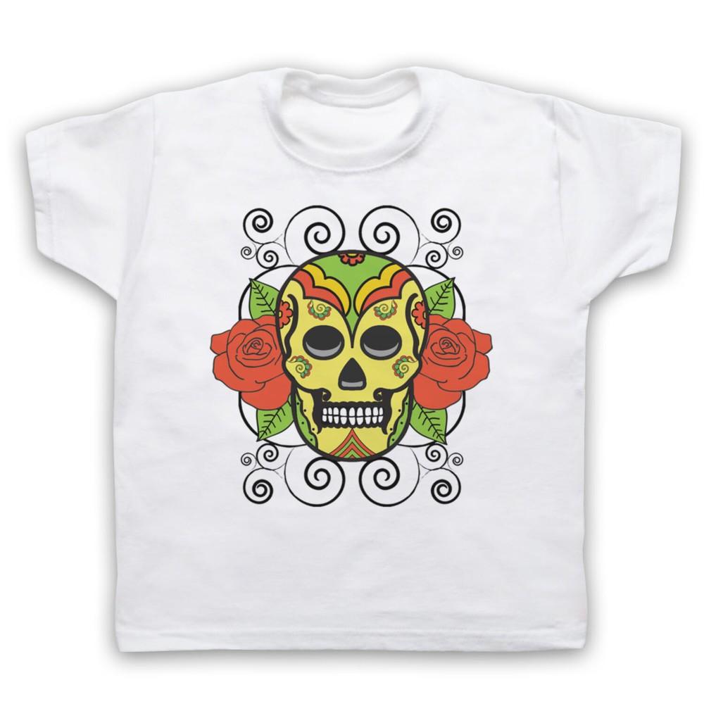 Patterned Skull And Roses Graphic Illustration Tattoo Kids Childs T-Shirt