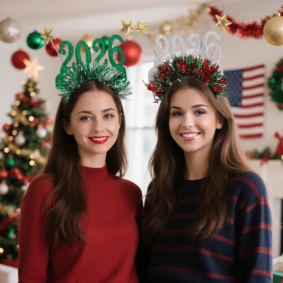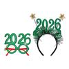 Celebrate the arrival of 2026 with this exclusive New Year prop featuring a unique digital year logo, perfect for New Year's Eve and festive events. Designed with vibrant gold, silver, red, and green colors, embellished with sparkling sequins and strips, it adds a dazzling touch to any party outfit. Available as lightweight glasses or comfortable headbands, these accessories ensure a secure fit without discomfort during extended wear.