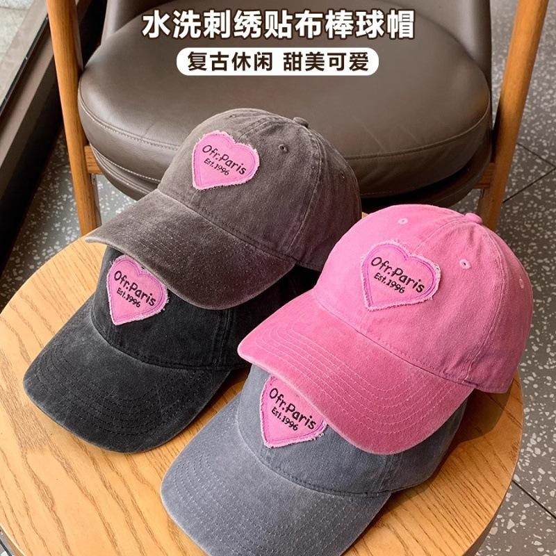 Spring and Summer Sweet and Cool Heart-shaped Pink Embroidered Baseball Cap Versatile Retro Washed Soft Top Duckbill Cap