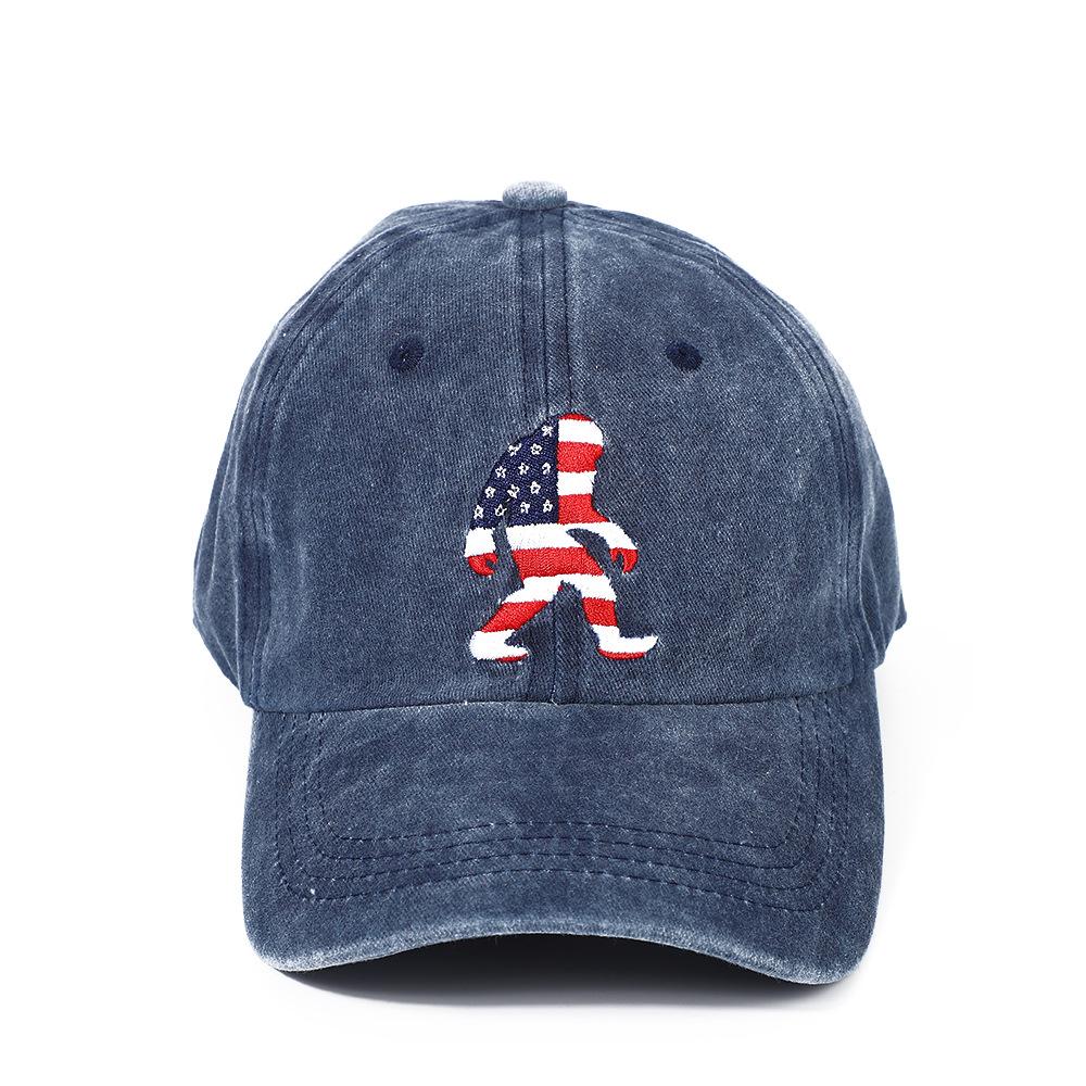 Washed American Flag Ape Man Embroidered Hat for Men and Women, Retro Foreign Trade Casual Versatile Baseball Hat, Adjustable