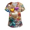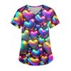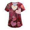 Ladies' Valentine's Day Printed Fashionable V-neck Pocket Short Sleeved Uniform And Caregiver Top