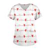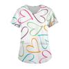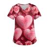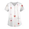 Ladies' Valentine's Day Printed Fashionable V-neck Pocket Short Sleeved Uniform And Caregiver Top
