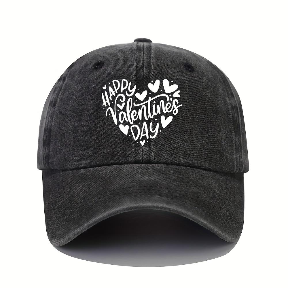 Happy Heart-shaped Printed Couple Baseball Cap Retro Curved Brim Soft Top Adjustable Size Casual Sports Outdoor Hat
