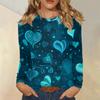 Women's Valentine's Day Fashionable Heart Print Round Neck Long Sleeve Pullover Top