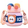 Lingpan Cute Cartoon Double Drinking Straw Big Belly Cup For Girls Outdoor Travel Shoulder Bag Water Bottle Large Capacity 850ml Barrel