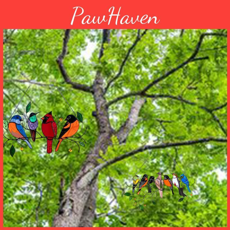 Stained Glass Birds Window Panel Beautiful Balcony Decor Suncatcher