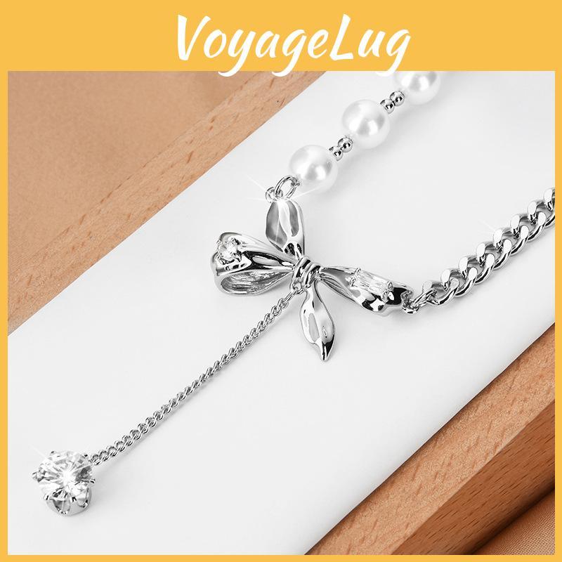 Elegant Pearl Bowknot Necklace For Women Featuring Trendy Tassel Design In Gold And Silver