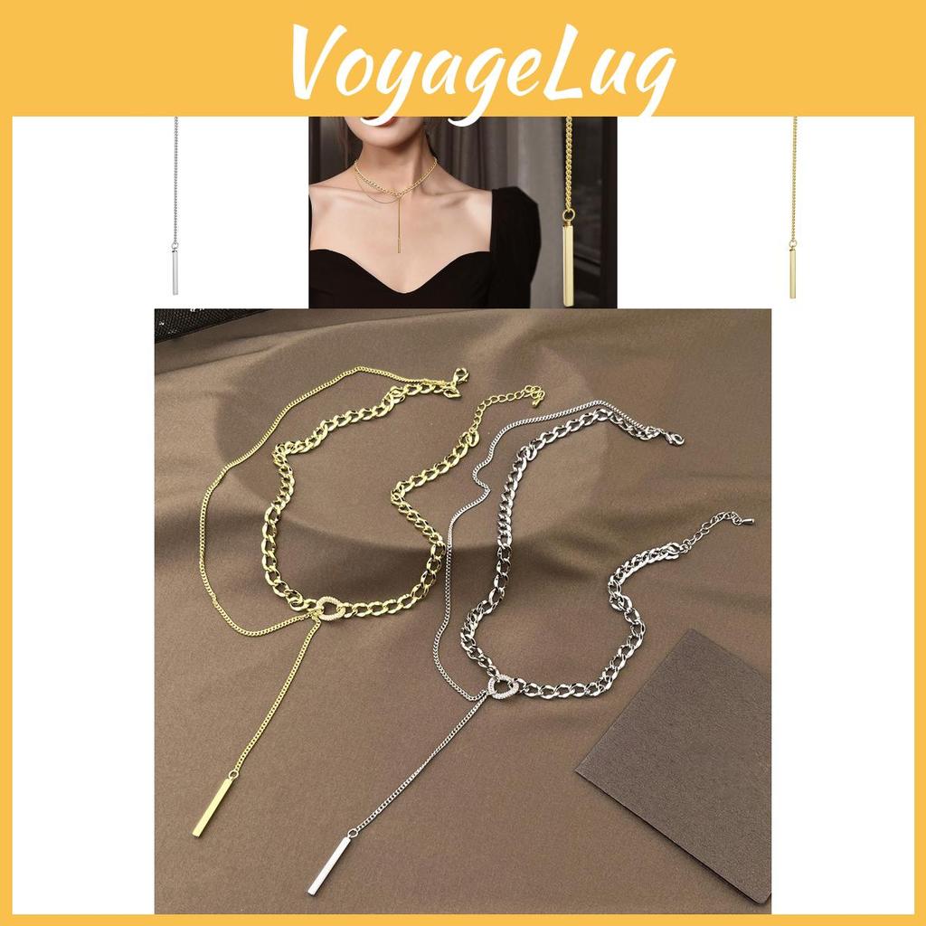 Stylish Geometric Titanium Steel Layered Chain Necklace For Women With Elegant Tassels