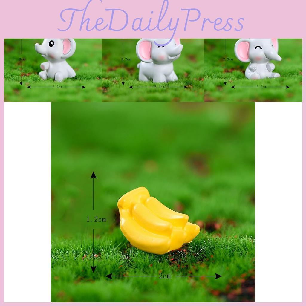 Offered in seven delightful variations, you can choose from a variety of poses to suit your personal taste. These include the high-fiving elephant, the sitting elephant, the standing elephant, the banana elephant, the upright elephant, the lying-down elephant, and the banana-eating elephant. Each figure is created in a cartoon style, enhancing their endearing and playful expressions. The soft, subtle colors blend seamlessly into any decor, making them versatile enough to be used in various settings, from a whimsical fairy garden to a serious office desk.
