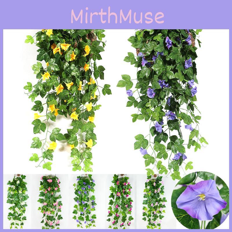 Lifelike Hanging Basket Artificial Flower Morning Glory Vine For Stunning Home Wall Decor