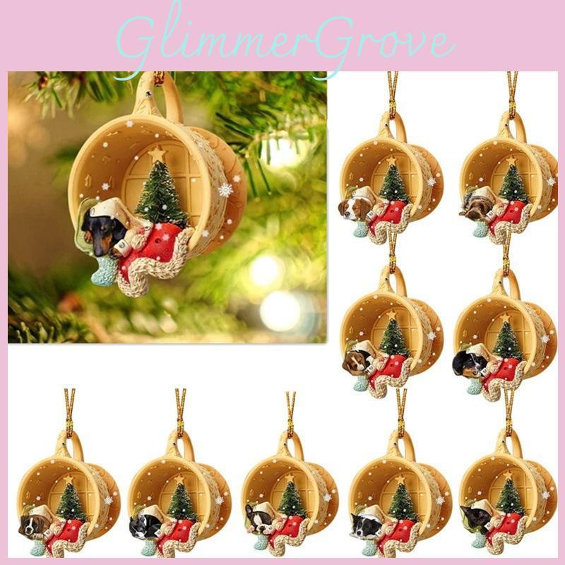 Cute Cartoon Acrylic Flat Dog Cup Holiday Ornament For Car Interior Decoration