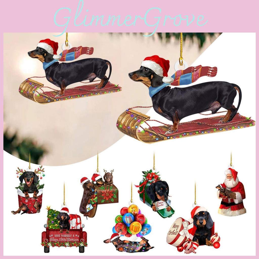 Adorable 2023 Christmas Dachshund Series Acrylic Car Interior Decorations Set
