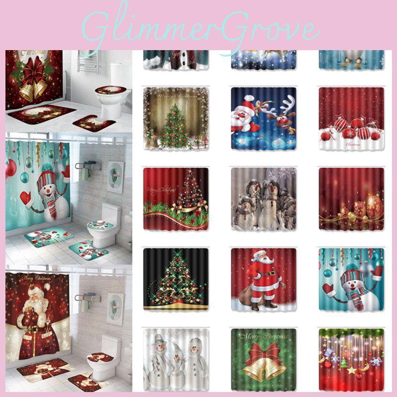 4pcs Christmas Shower Curtain And Toilet Cushion Set Cover Mat For Festive Bathroom Decor