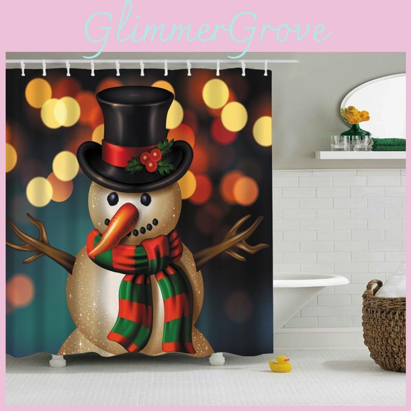 Stunning Christmas Home Shower Curtain In Waterproof Polyester With 12 Hooks For Festive Decor