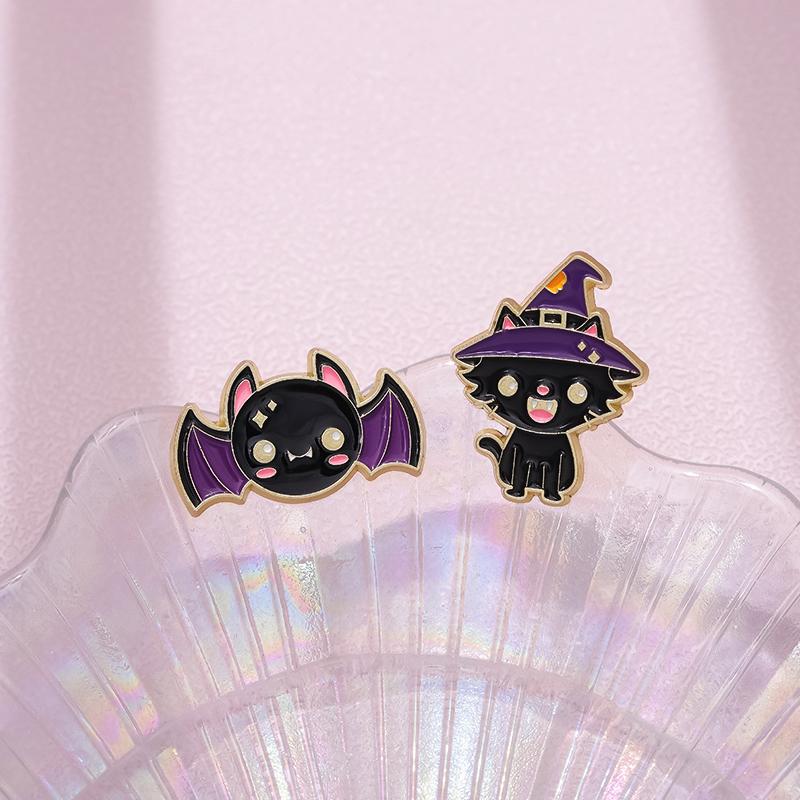 Cute Bat Cat Enamel Pins Custom Halloween Animals Brooch Lapel Badges Punk Gothic Jewelry Gift for Kids Friends
