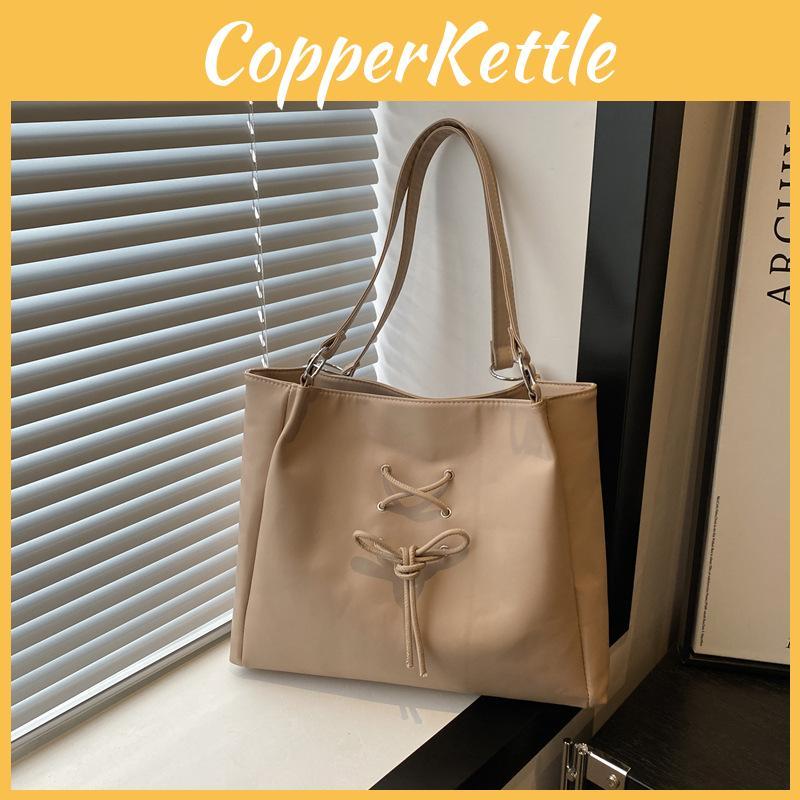 Stylish Black Pink Beige Khaki Large Capacity Chic Bow Tote Bag For Daily Use