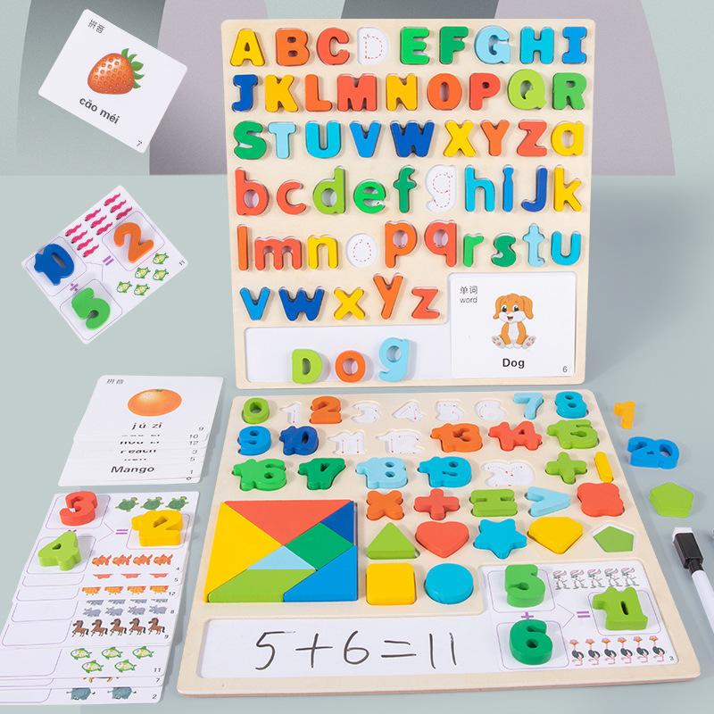 Children's Numbers Letter Matching Board Baby Shape Cognition Number Operation Tangram Puzzle Educational Wooden Toy