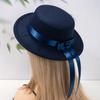 Handmade Uniform Hat Elegant Flat Top Flat Edge Woolen Academy Style Bowtie Ribbon Hat