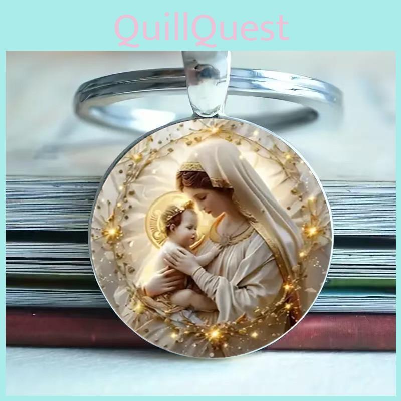 Blessed Virgin Mary Aluminum Round Keychain Gift For Religious Jewelry Collectors