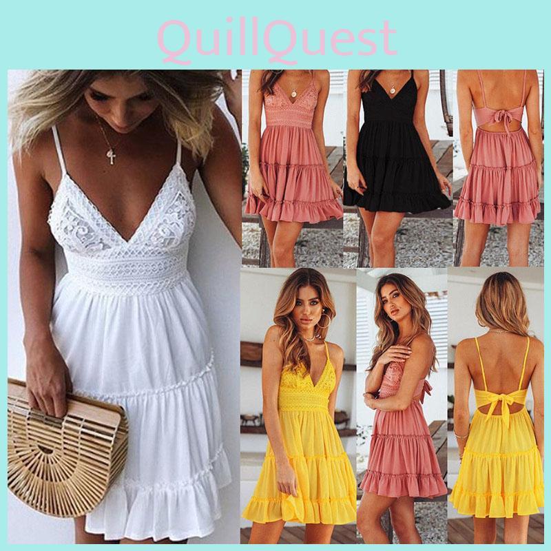 Stylish Women Summer Boho Short Mini Dress For Evening Cocktail And Beach Parties