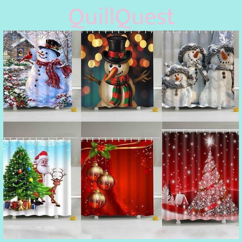 Stunning Christmas Home Shower Curtain In Waterproof Polyester With 12 Hooks For Festive Decor