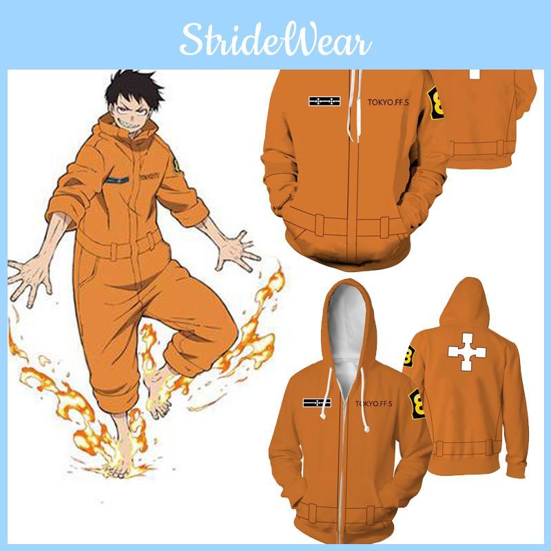 Unique Anime Fire Force Men Hooded Zipper Sweatshirts Cozy Pullover Cosplay Costume