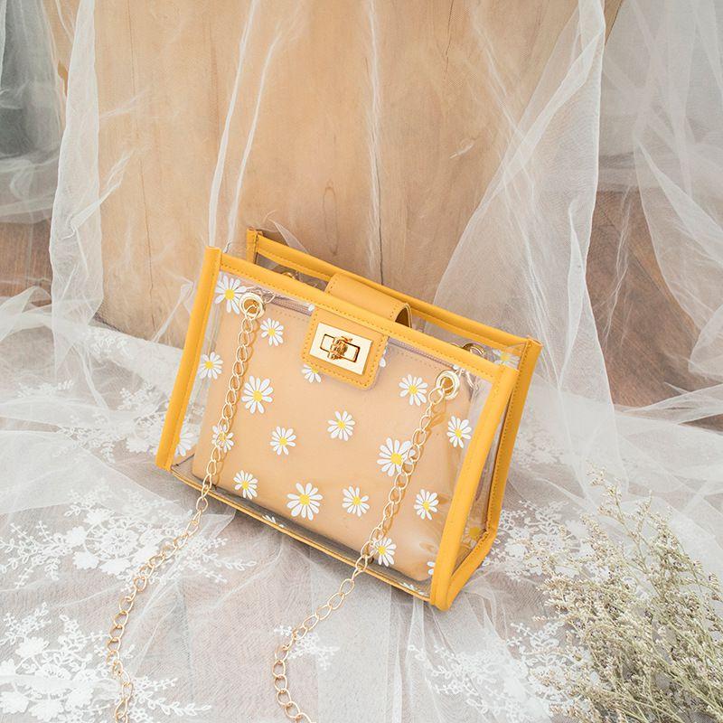 Elegant Daisy Flower Transparent Shoulder Messenger Bag For Women With Chain