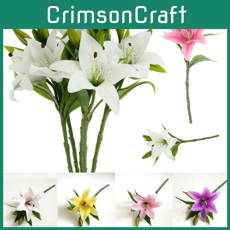 Brightly Colored Realistic 38cm Artificial Lily Millet Flower Bridal Bouquet