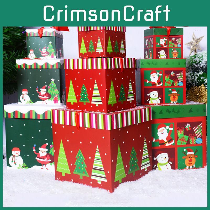 Large Premium 3pcs Christmas Gift Box With Lid Ribbon Xmas Present Box Square
