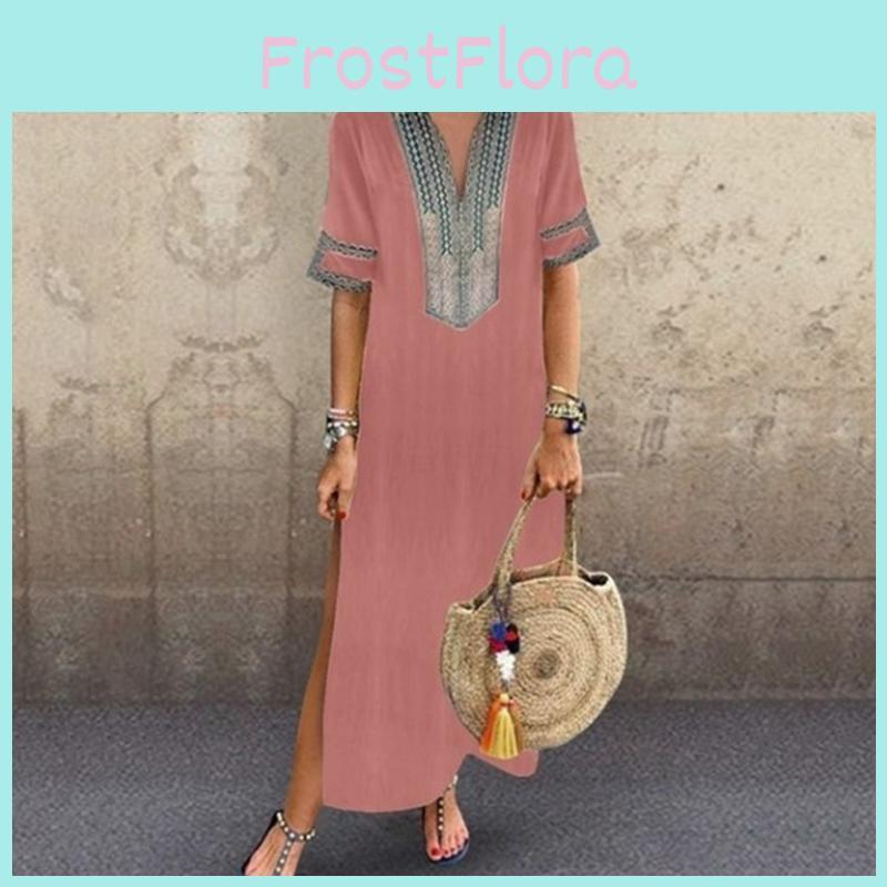 Elegant Plus Size Womens V-neck Long Maxi Dress For Effortless Summer Style