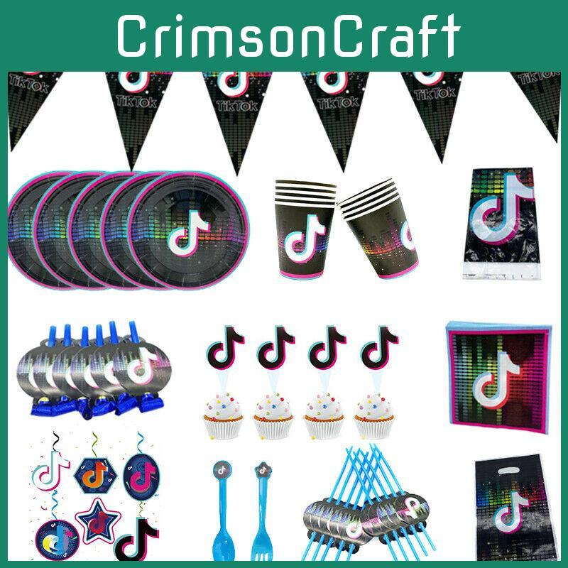 Colorful Tik Tok Birthday Party Supplies Set Featuring Fun Tableware Decor Plates Cups And Banner