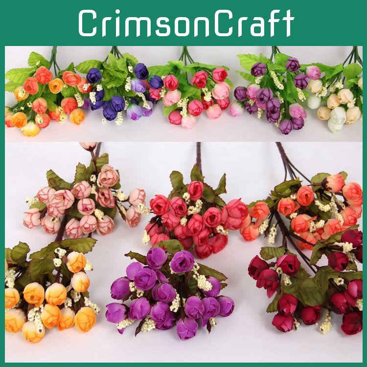 Premium Silk Cloth Artificial Flowers Tea Rose Buds For Classic Wedding Decor