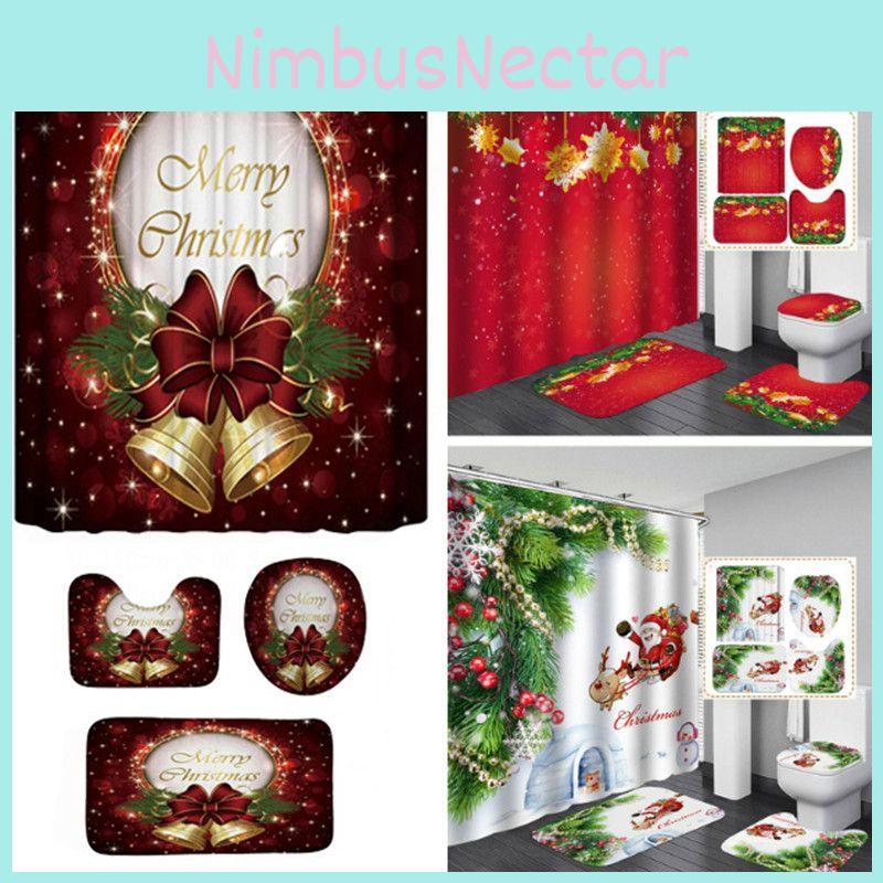 Festive Christmas Shower Curtain And Bathroom Mat Set With Waterproof Material