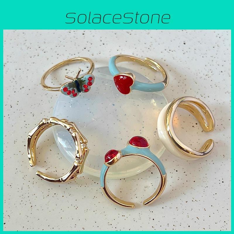 Vintage Butterfly Adjustable Ring For Women Elegant Enamel Non Fading Copper Jewelry