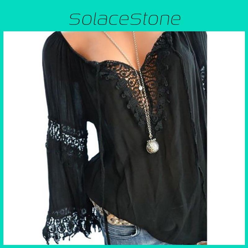 Women V Sexy Neck Long Sleeve Lace Up Shirt Casual Blouse Top Lady Loose Shirt T