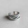 S925 Pure Silver Korean Irregular Layered Wave Design Adjustable Ring For Women