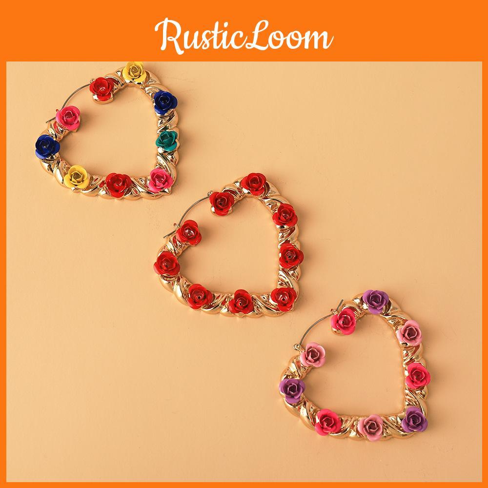 Elegant Design: These heart-shaped earrings feature a beautifully intricate rose flower design, making them a standout piece in any jewelry collection.