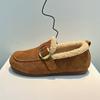 Leather Velvet Birkenstocks Women's 2025 Autumn and Winter New Retro One-pedal Lamb Wool Warm Beans Cotton Shoes Outside