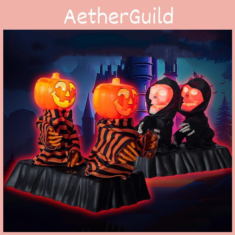 Crafted from high-quality materials, including durable plastic and fabric, this delightful pair showcases a charming pumpkin and a playful skull that dance in unison.As they sway to their own lively tunes, the smooth transitions of colorful lights create a captivating ambiance, filling your space with a cheerful glow.