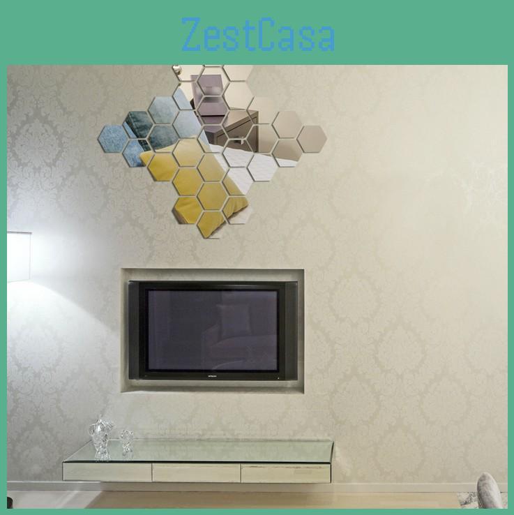 Elegant Silver Hexagon Acrylic 3d Mirror Wall Stickers For Living Room And Bedroom
