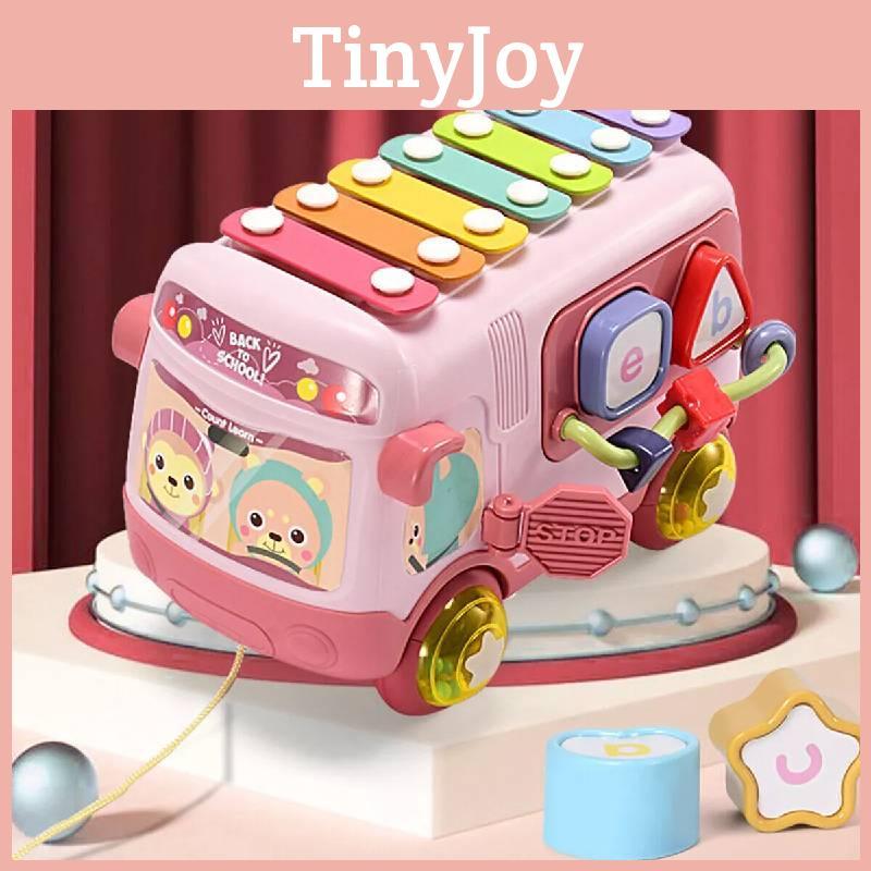 Colorful Xylophone Bus Red Sensory Development Kids Musical Toy Plastic