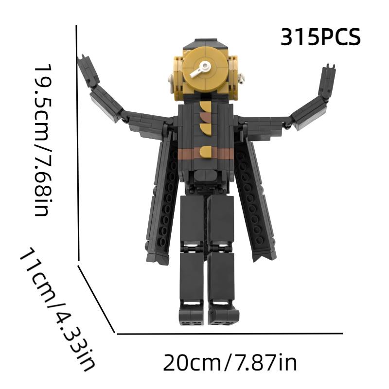 Introducing the Skibidi Toilet Clock Man vs. Surveillance Man building blocks toy. This toy is made from high-quality plastic materials, specifically ABS, ensuring durability and long-lasting playtime. With its small particle type construction, this set comes with 200-400 pieces of building blocks.