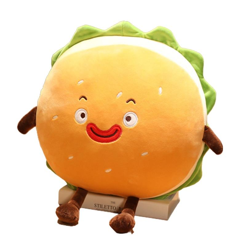 Our irresistible Hamburger Figure Plush! It's made of ultra-soft, skin-friendly material that feels great in the hand. The interior is filled with high-quality pp cotton, which is very suitable for hugging in your arms. Our unique burger designs will please anyone. This hamburger plush toy comes in two sizes, small and medium.