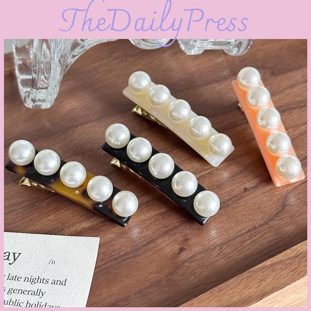 Chic French Style Pearl Embellished Acetate Hair Clip For Women High-end Fashion Accessory