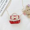 Trendy Red Mini Chain Crossbody Bag For Kids With Charming Bow Design And Lightweight Canvas Material